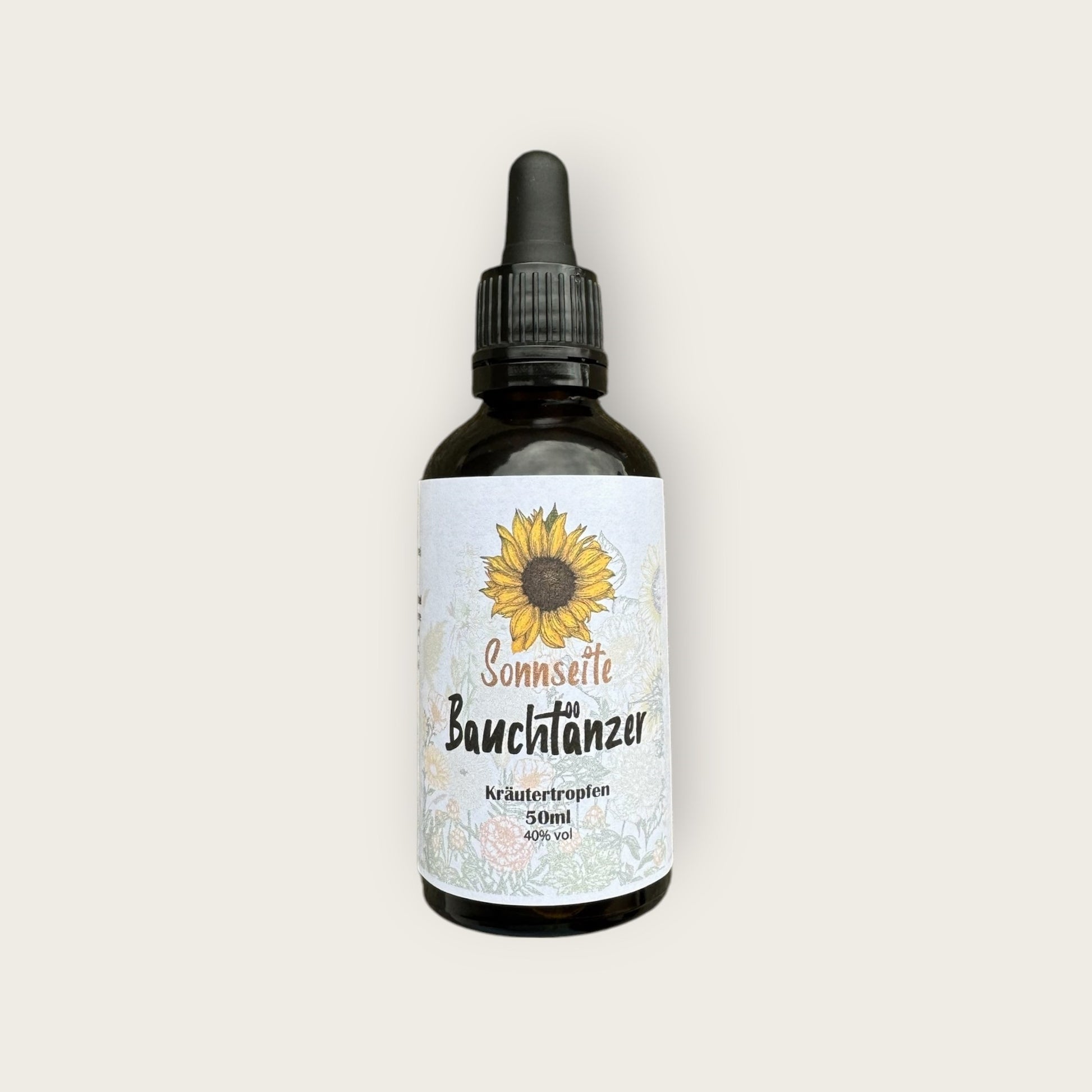 Die Kräutertropfen mischung "Bauchtänzer" vereint die traditionell geschätzten Eigenschaften von Pfefferminze, Kamille, Beifuß und Ringelblume.